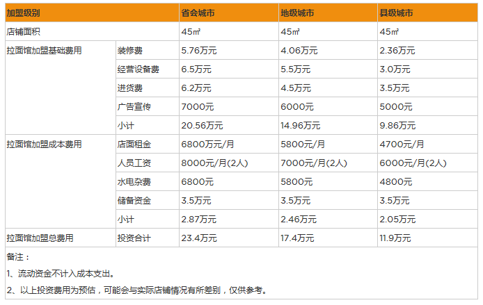 開(kāi)家拉面館投資一般需要多少錢?45㎡投資12萬(wàn)元起