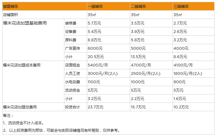 6、員工工資:爆米花店通常比較忙碌,普通員工的工資大概在3000元左右,一家35平米大小的爆米花店,至少需要2個(gè)以上的員工,那么每個(gè)月的員工工資支出都在0.6萬元以上。