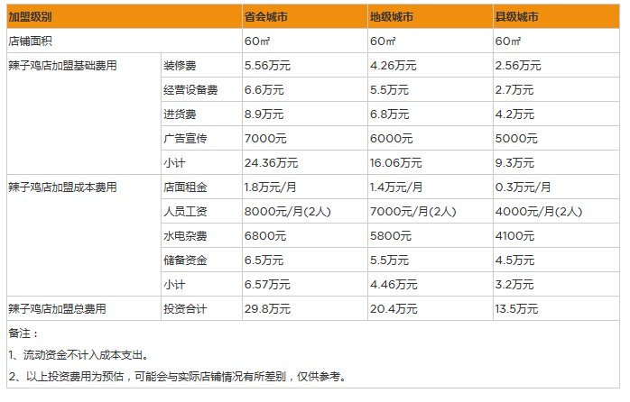 3、辣子雞的開店成本與投資回報空間