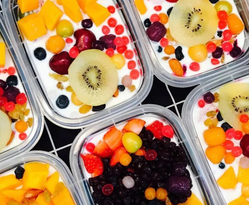我開的是一家自選水果撈店鋪,就是把水果洗凈、削皮、切塊,然后放在柜臺上供顧客自由選擇,再配之以小料和酸奶,顧客想吃什么就吃什么,想吃多少就吃多少。