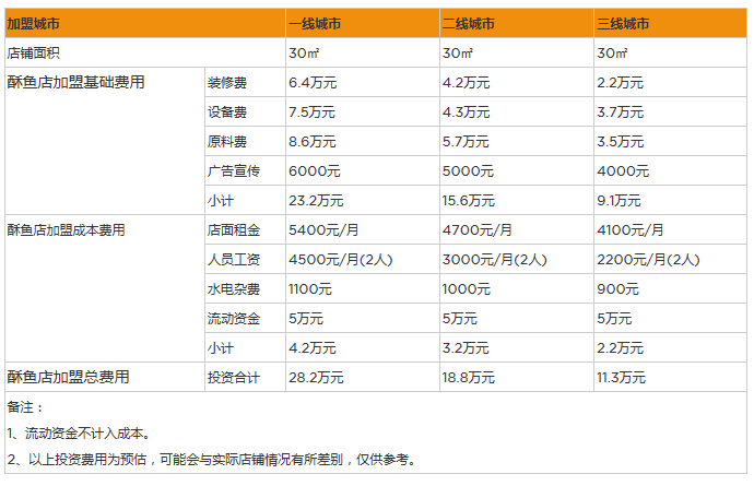 開家酥魚店投資一般需要多少錢?30㎡的店面年賺31萬