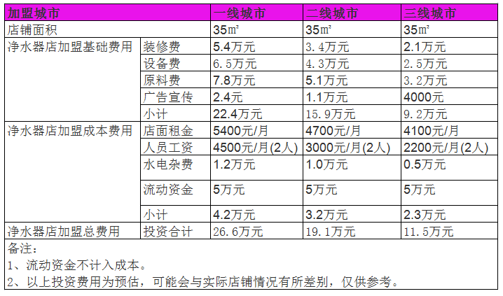 開(kāi)家凈水器店投資一般需要多少錢?35㎡店面投資11萬(wàn)照樣盈利賺錢