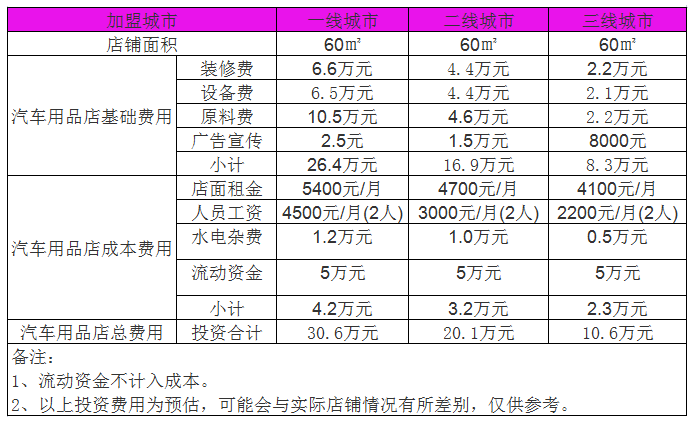 開家汽車用品店投資一般需要多少錢?60㎡店投資10萬(wàn)