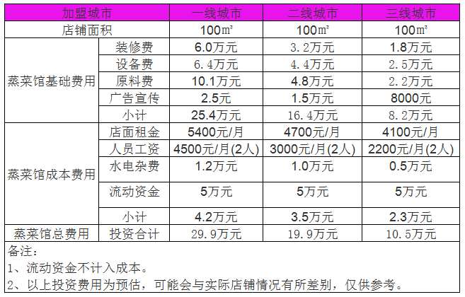 開家蒸菜館投資一般需要多少錢?三線城市投資10萬