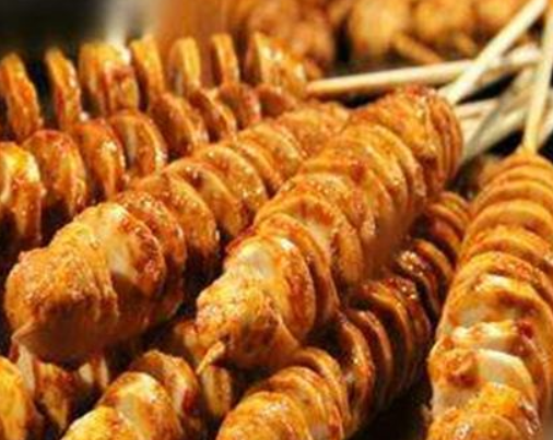 烤面筋是一種傳統(tǒng)特色小吃,具有香辣味,孜然味.主要是將面筋制作成螺旋狀坯料,放置于炭火上進(jìn)行烘烤,撒上調(diào)料、醬汁即成.烤面筋這一休閑特色小吃當(dāng)前在很多地方尚屬空白,這自然是一個絕對的淘金熱點(diǎn)。
