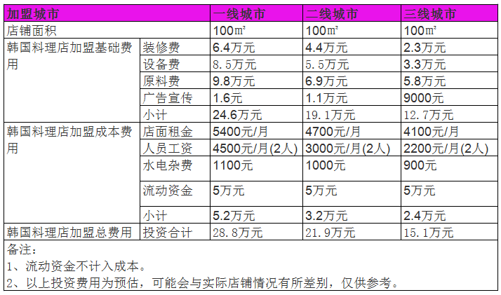 開家韓國料理店投資一般需要多少錢?100㎡店面投資15萬照樣盈利賺錢